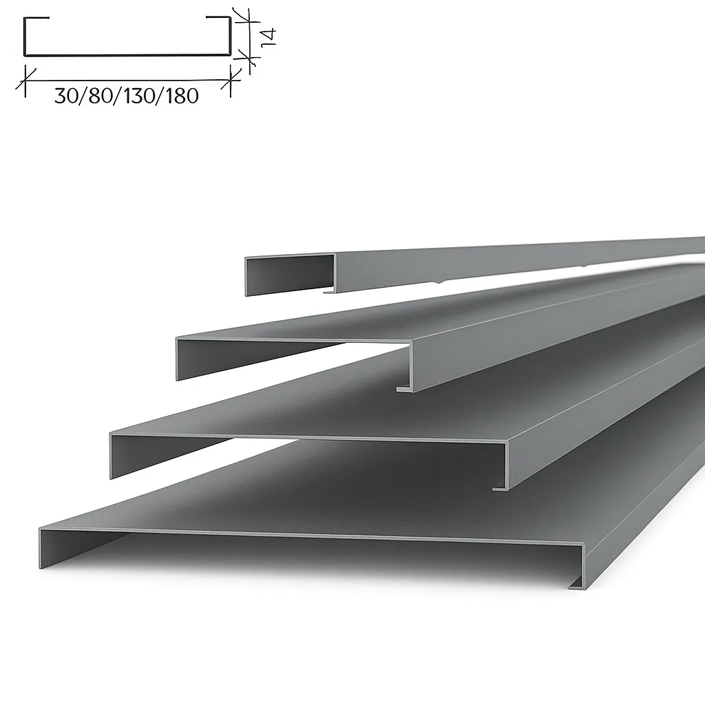 A80SV металлик — это потолочная рейка прямоугольного сечения шириной 80 мм и высотой 14 мм, окрашенная в цвет металлик. Применяется в современных интерьерах, где важны строгий стиль, износостойкость и практичность. Монтаж осуществляется на открытую гребёнку BTS с шагом 100 мм.