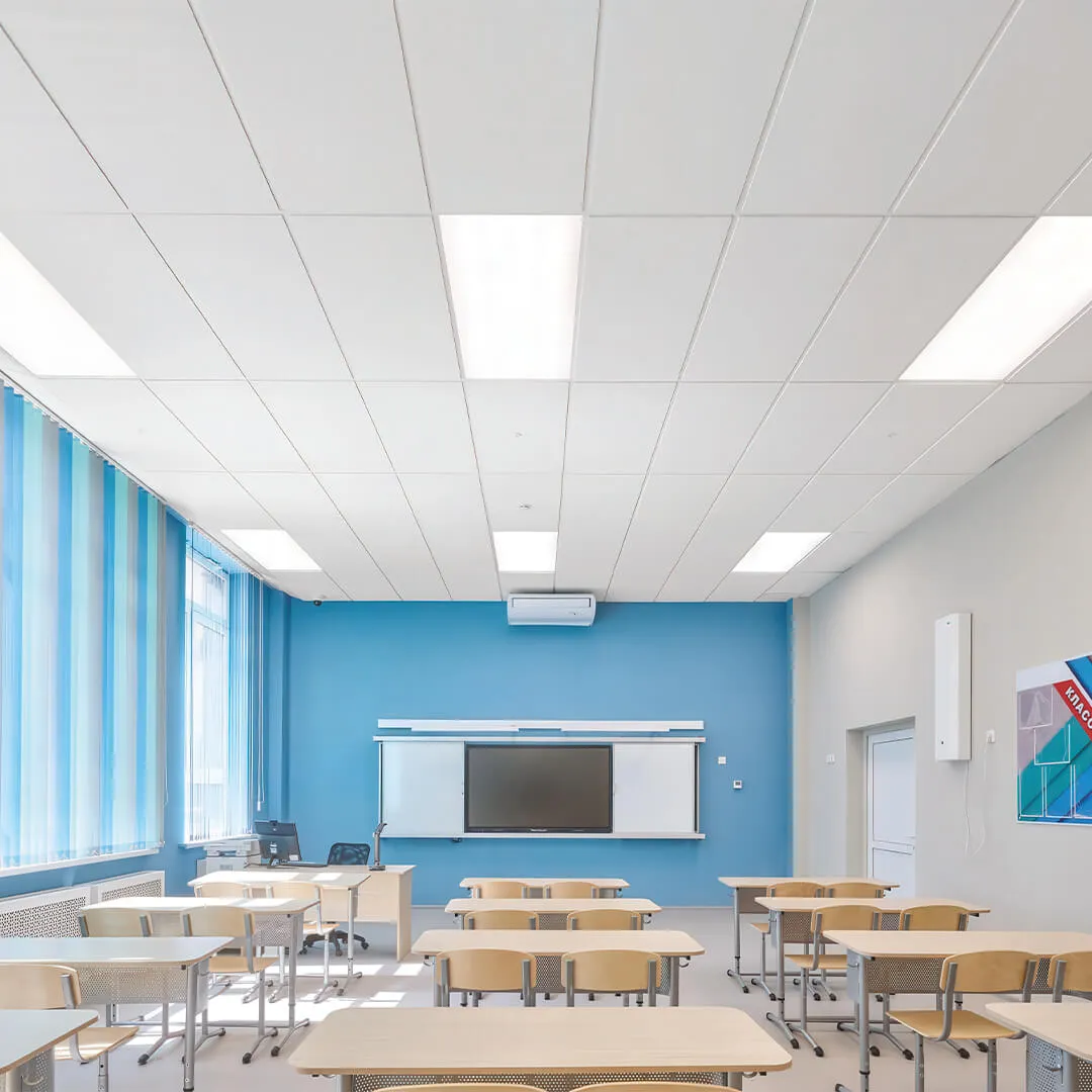 - Акустические потолочные панели: обеспечивают улучшение звукоизоляции и поглощение шума.