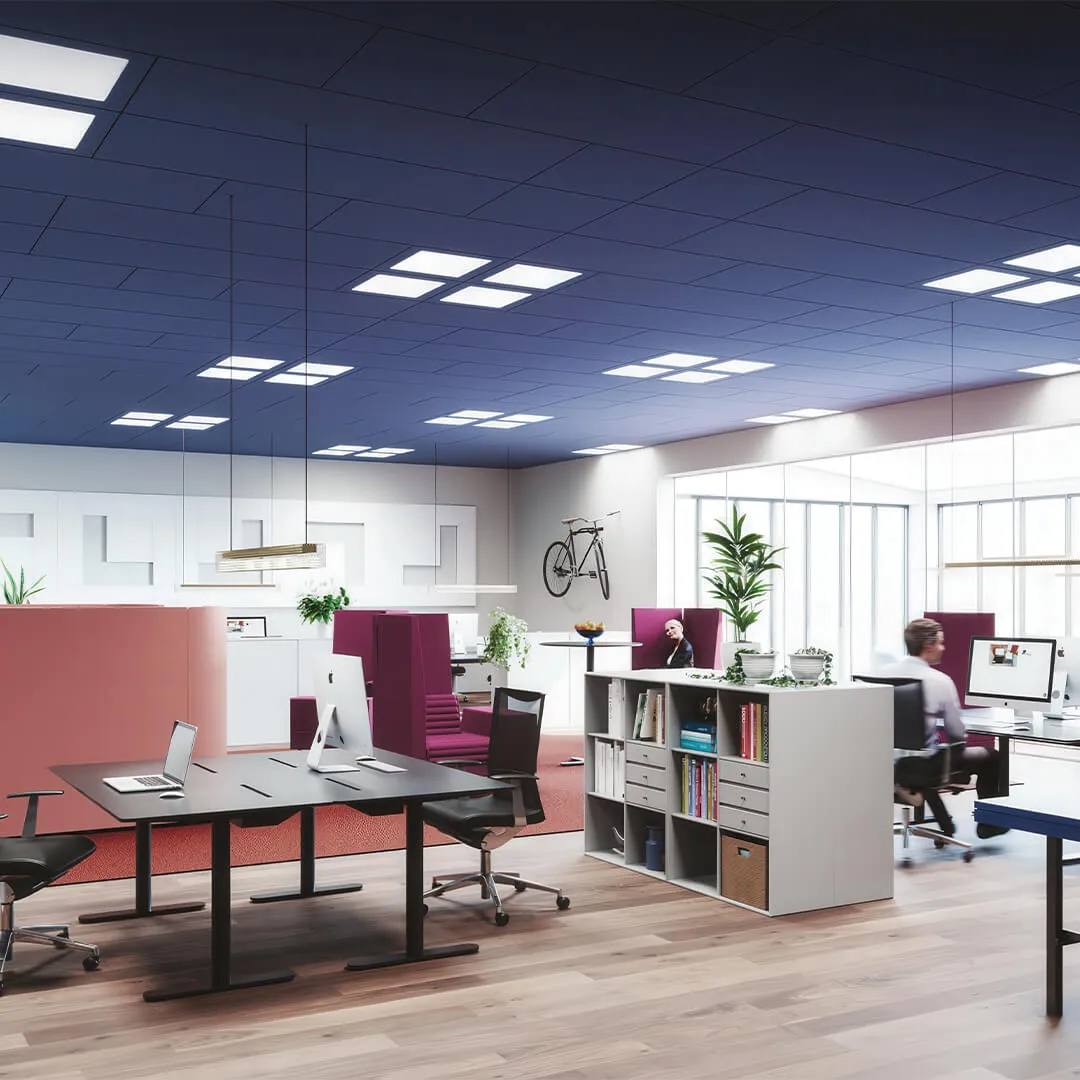 - Системы для открытых пространств: подвесные панели и облака, которые эффективно снижают шум в больших помещениях.