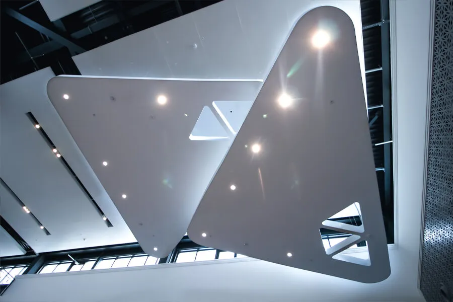 Компания «Авангард» приняла участие в оснащении потолочного пространства аутлет-центра Brand Stories в Екатеринбурге — первого в регионе объекта такого формата. Проект отличился ярким дизайнерским подходом: парящие треугольные панели, скрытая подсветка, разноуровневые конструкции. Были реализованы индивидуальные решения в партнёрстве с Knauf Ceiling Solutions.