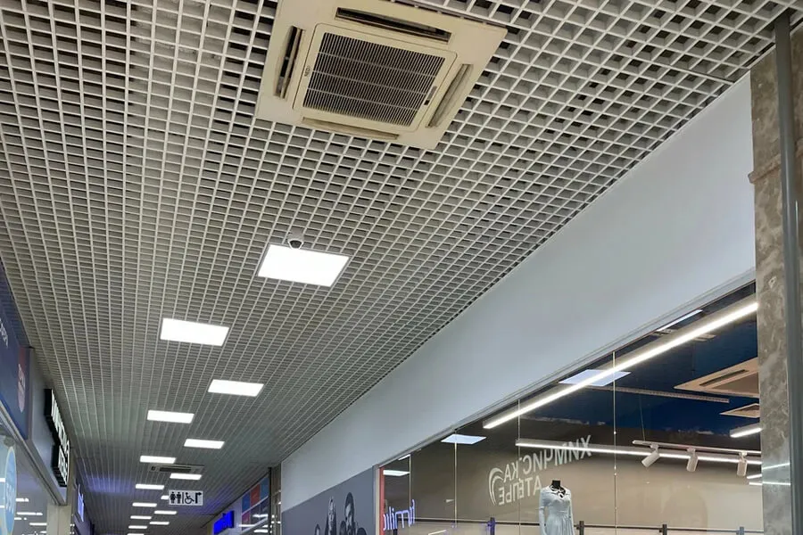 Реализовать потолочные и стеновые решения для различных зон торгового центра — от торговых галерей и входных групп до кинозалов. В приоритете были: лёгкий доступ к инженерным системам, визуальная однородность пространства и акустический комфорт в зонах повышенной нагрузки.